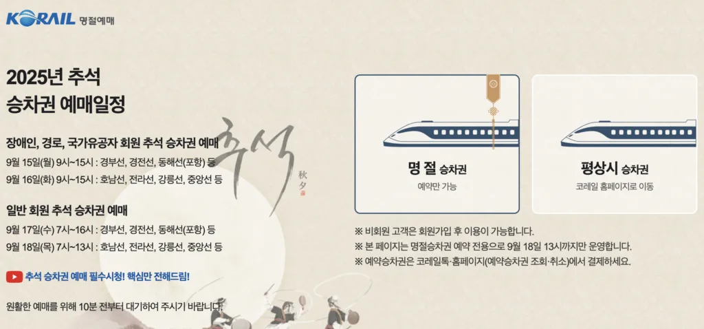 2025년 추석 기차표 예매 총정리 (KTX·SRT 일정 & 성공 팁)